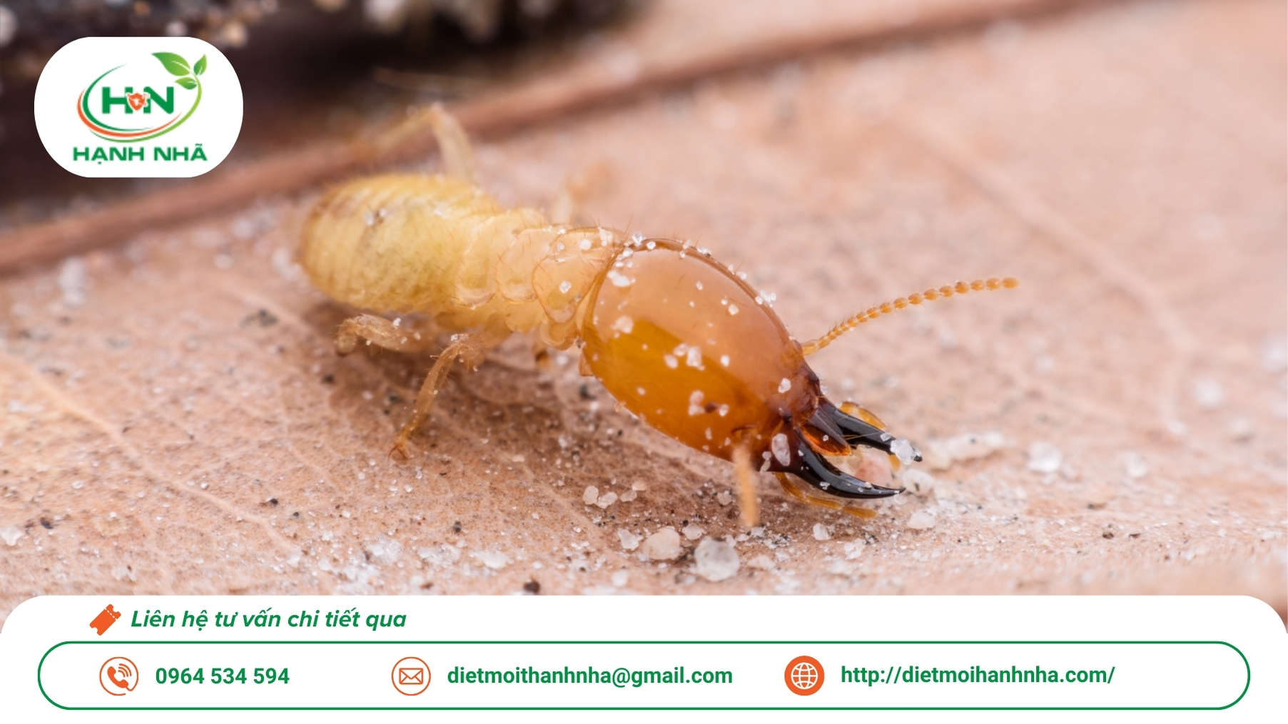 - Mối: Diệt mối tận gốc, phòng chống mối tái phát, bảo vệ công trình và đồ gỗ lâu dài.